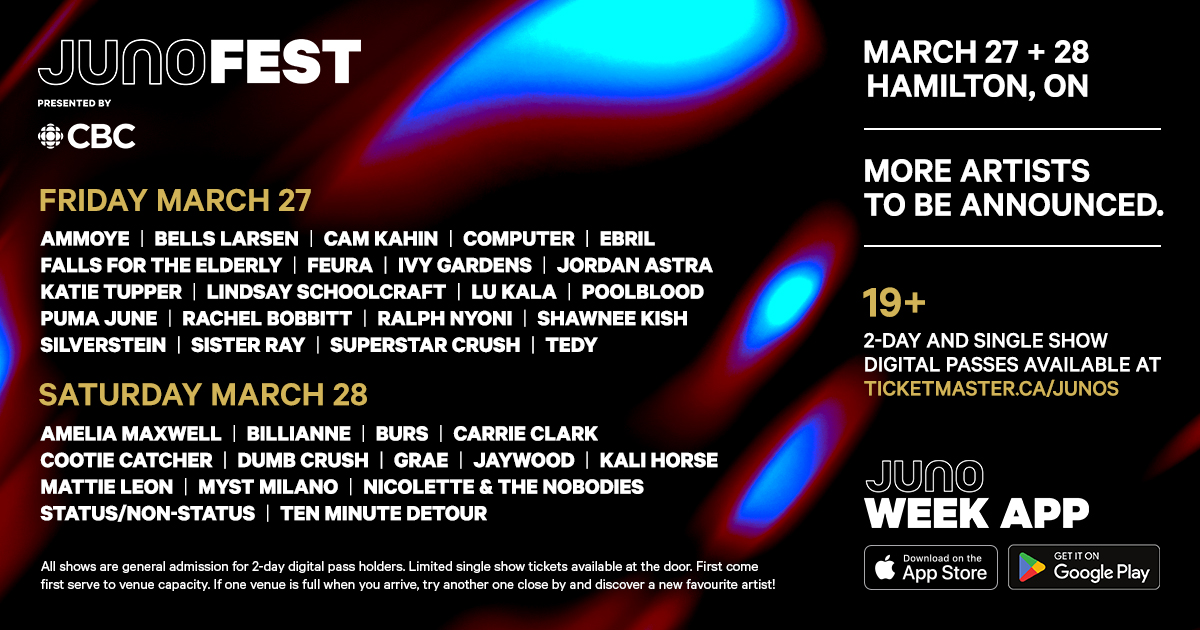 JUNOfest Presented by CBC is coming back – bigger, louder, and ready to ignite Hamilton with the sounds of Canada’s top musical talent! For two epic nights, experience high-energy, genre-spanning music, featuring live performances from your favourite Canadian musicians and JUNO nominees across Hamilton’s iconic stages. One digital pass unlocks countless memories and one of the most unforgettable music experiences of the year!